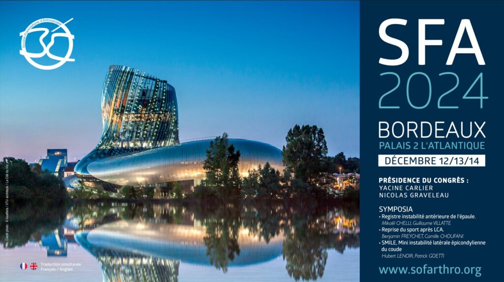 Le prochain congrès de la Société Francophone d’Arthroscopie se déroulera à Bordeaux, au Palais 2 l’Atlantique .
